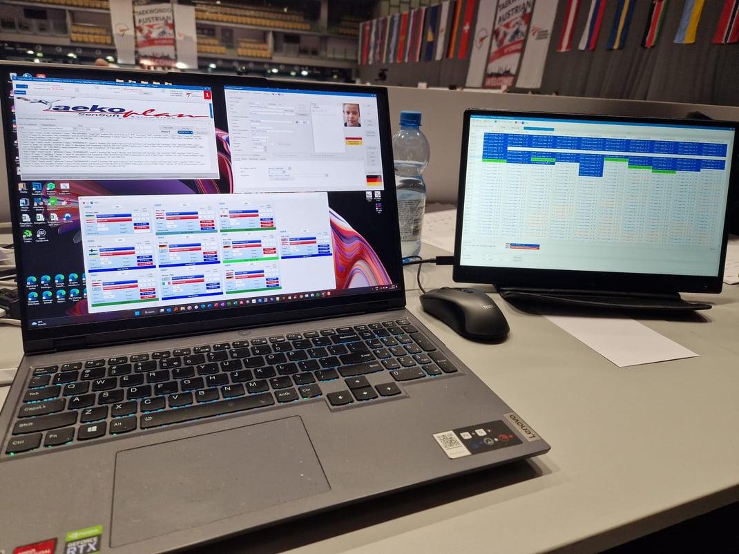 A complete system with tournament management, Daedo/KP&P scoreboard, Video Replay, Weighin, RTDS and live scoreboards linked together!