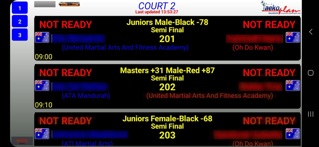 Separate add-on to provide info on a second screen about times and progress of poomsae categories during the day