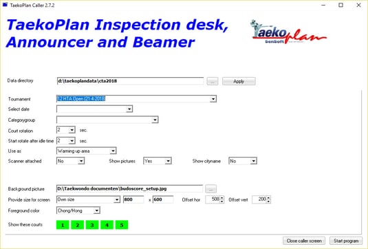The caller is an add-on for TaekoPlan that shows the first upcoming fights for any court.