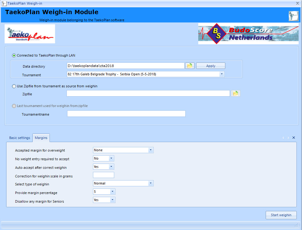 The weighin module connects to 4 brands/types of weighin scales. It can be connected to TaekoPlan to automate the weighin process.