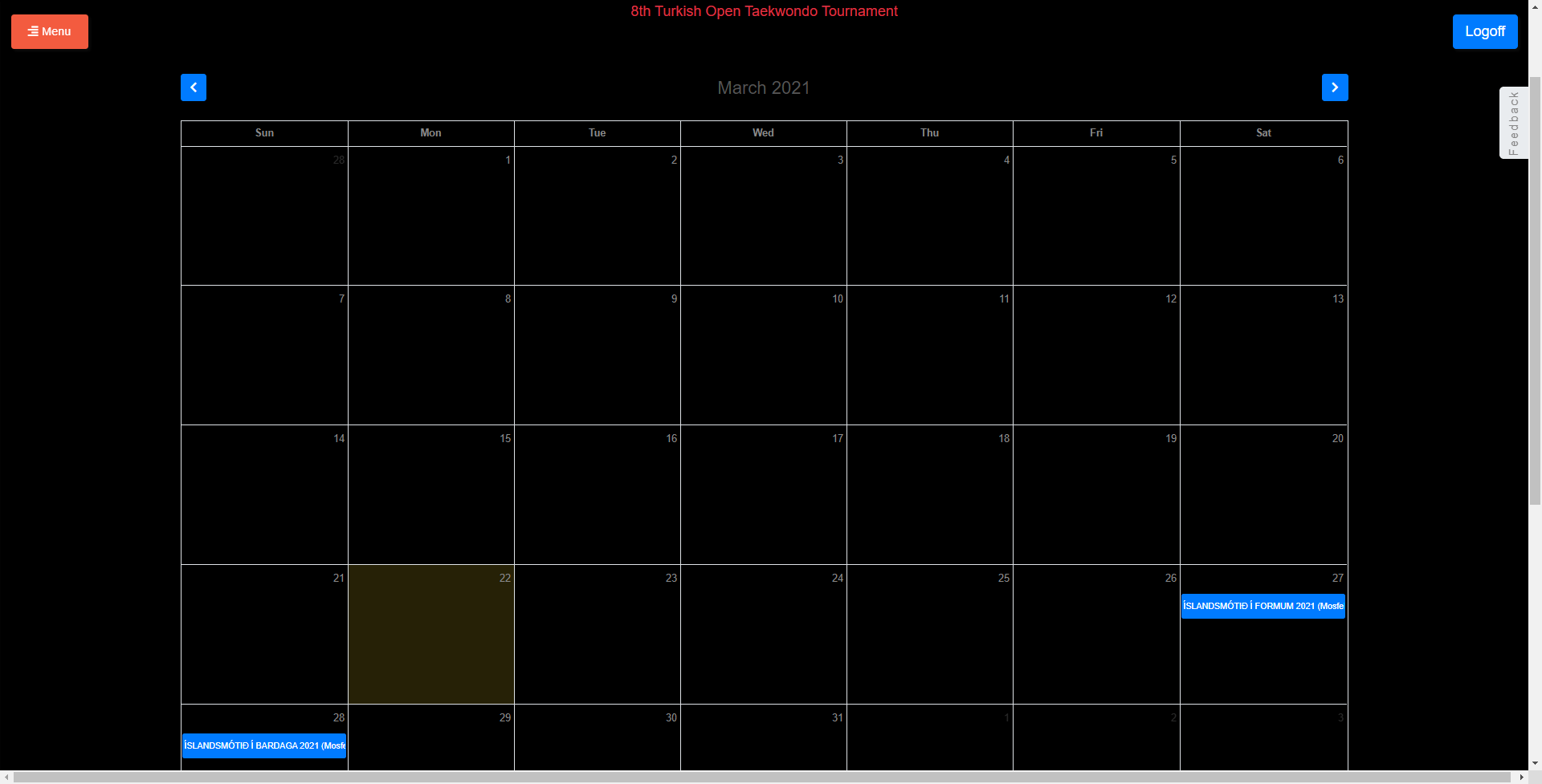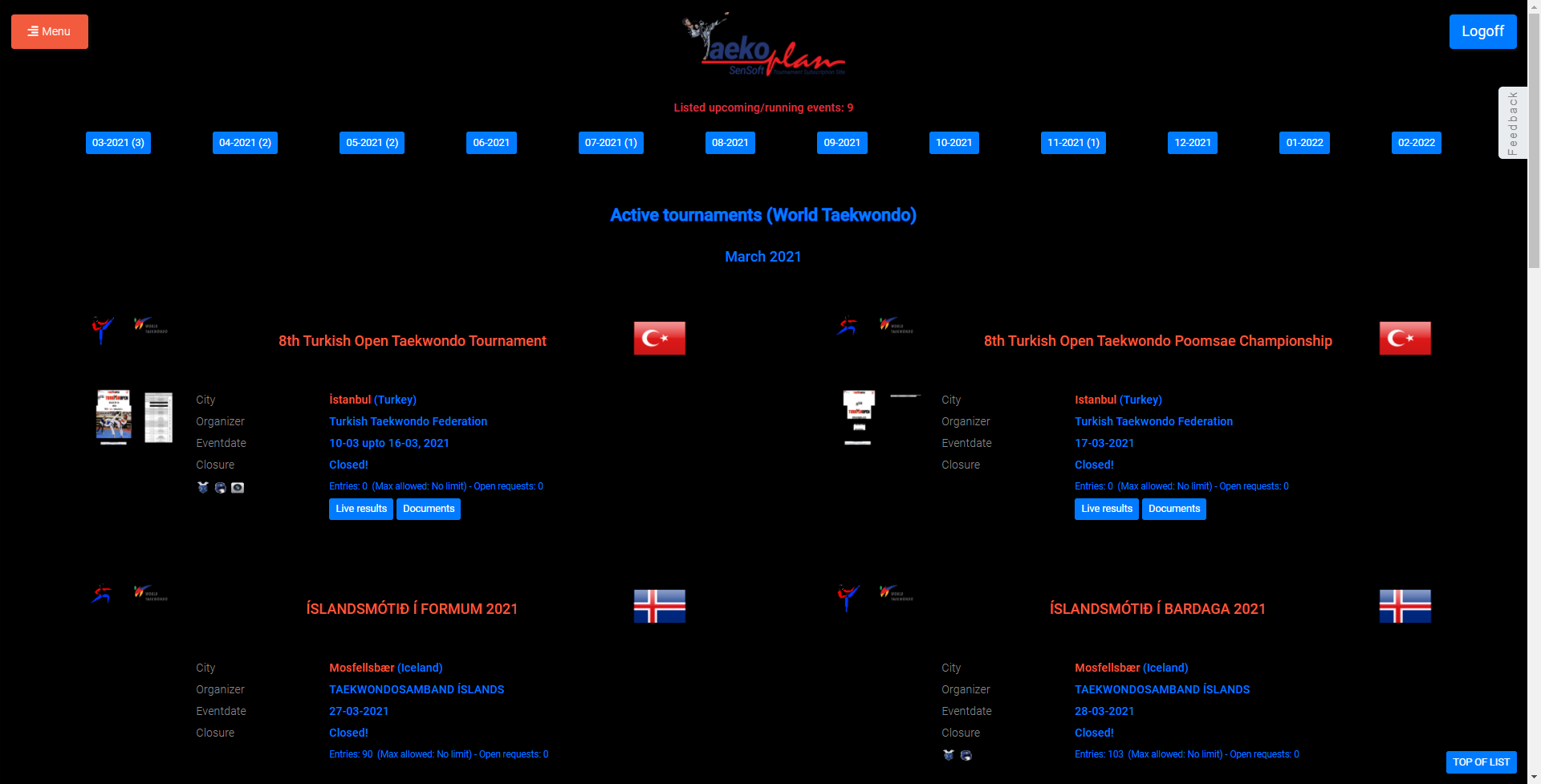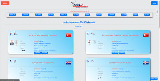 Any tournament to be published is only accepted when approved by the governing body, i.e. a National Federation, World Taekwondo or World Taekwondo Europe.