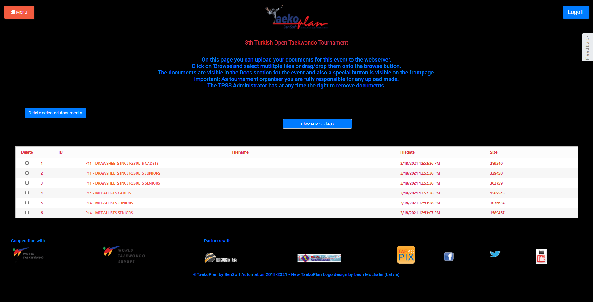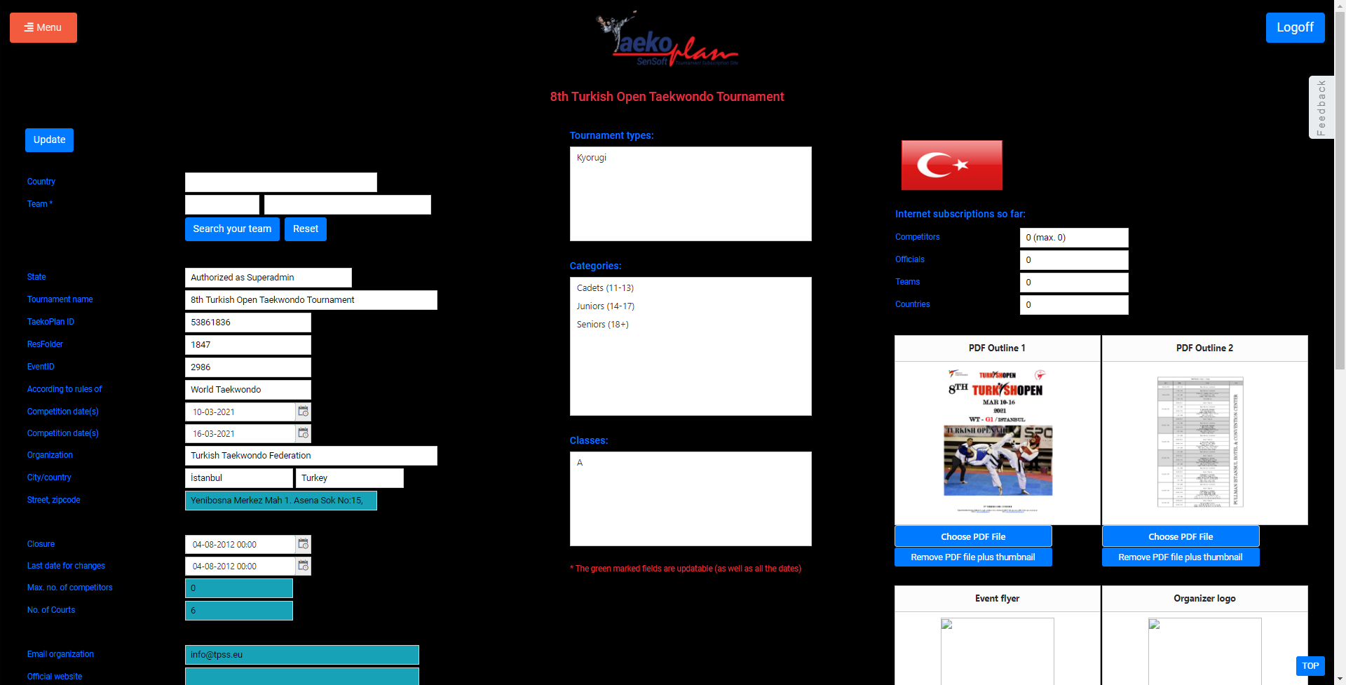 With an admin account, created through TaekoPlan, you can administer the tournament